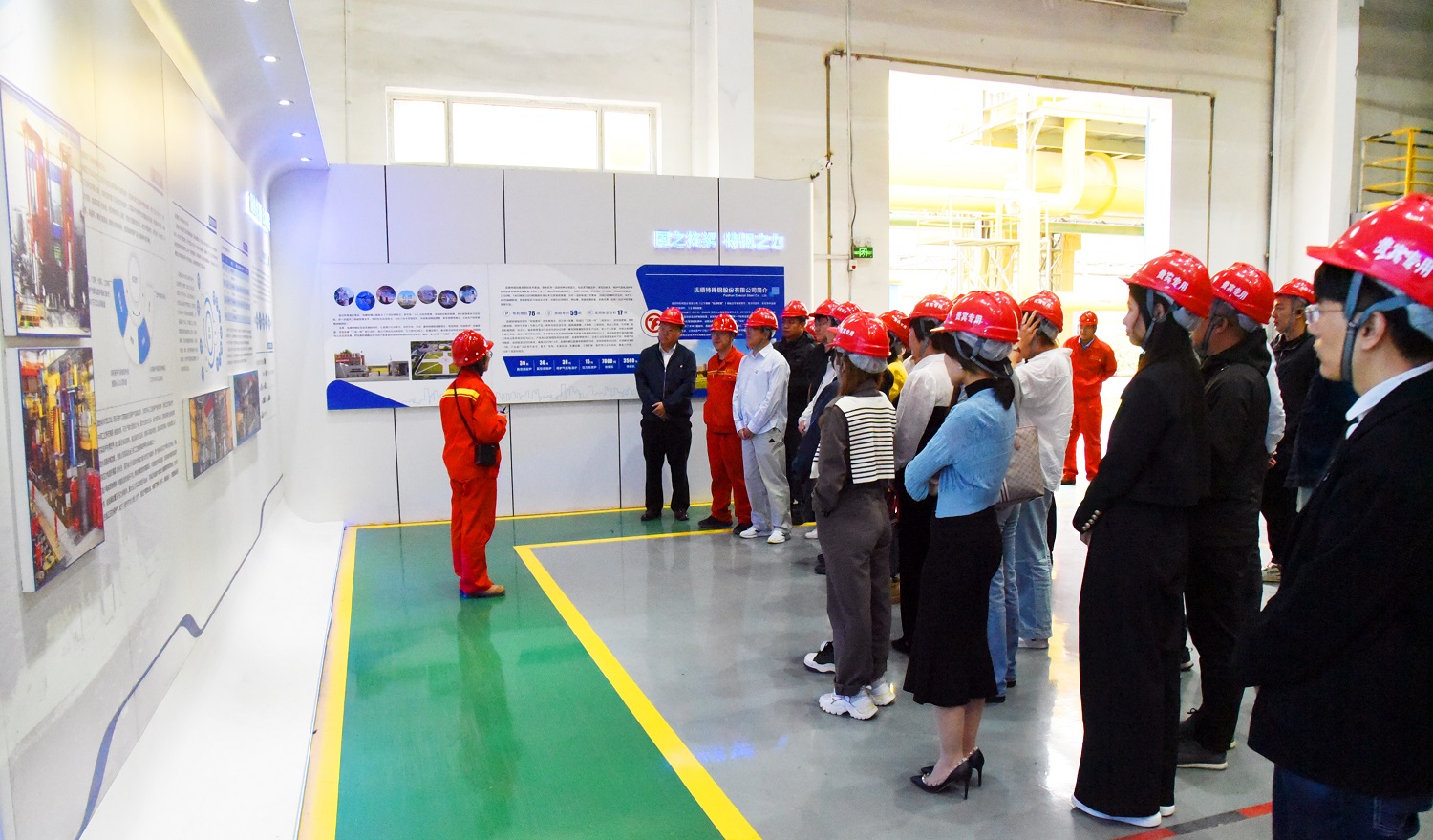 韓斌向考察組介紹了生產(chǎn)設(shè)備概況和產(chǎn)品應用領(lǐng)域等。