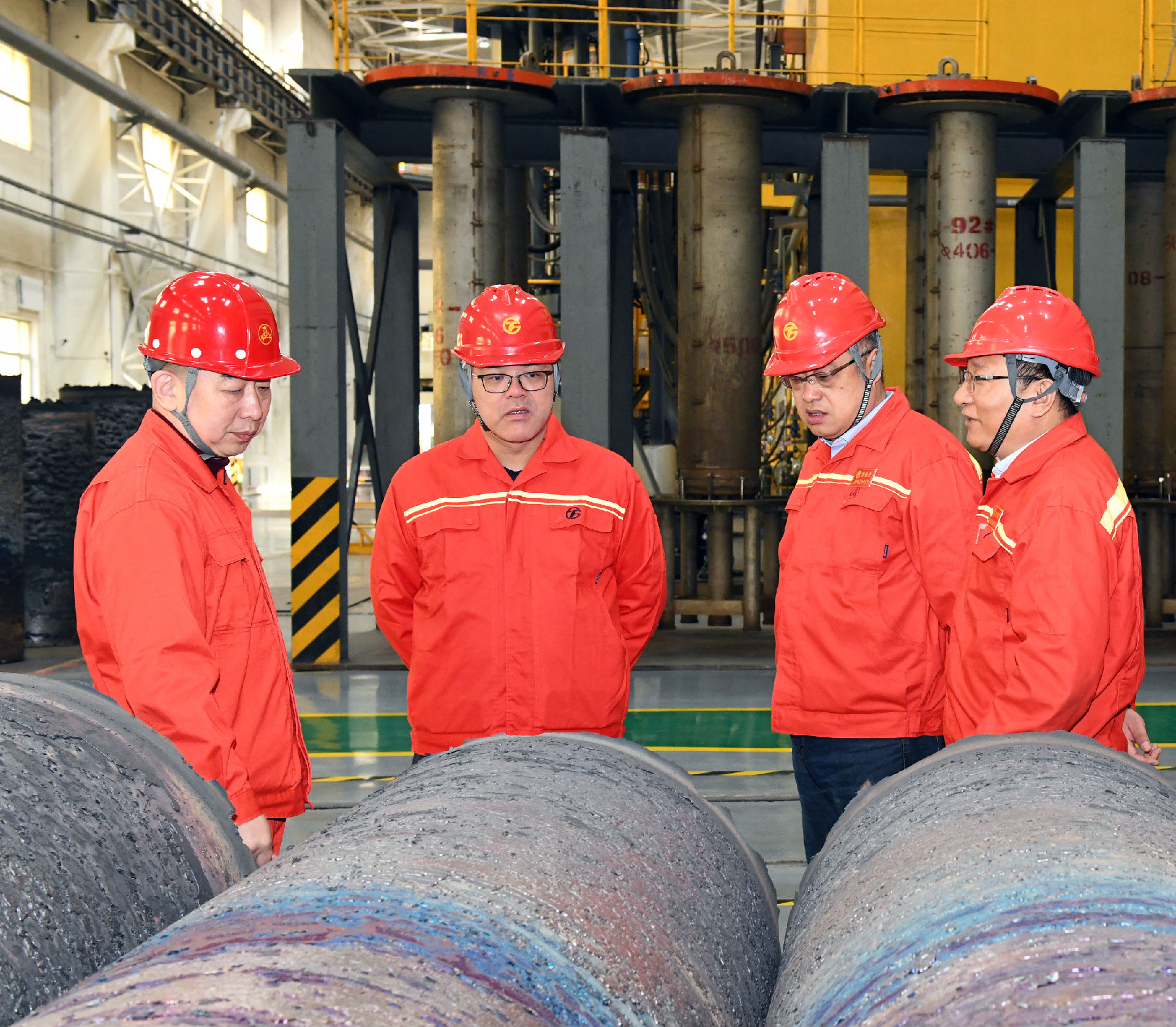 4月16日,沙鋼集團黨委書記、董事長沈彬在董事局常務執(zhí)行董事、副總裁、撫順特鋼黨委書記季永新,撫順特鋼董事長、總經理孫立國,副總經理高健,總經理助理穆立峰的陪同下,對撫順特鋼已經完工和正在進行的重點技改工程項目情況進行了調研。他先后來到特冶煉鋼廠產業(yè)化一期廠房、實林公司高合金小棒材生產線、鍛造廠2200噸精鍛機和7000噸快鍛機生產線、電爐煉鋼廠生產現場、高合金板材技改現場。每到一處,沈彬書記都仔細察看,認真傾聽,了解技改項目建設情況、新設備生產情況、后續(xù)發(fā)展規(guī)劃情況等。沈彬書記的到來給撫順特鋼干部員工帶來了極大鼓舞,激勵著員工做好本職工作,凝心聚力,為企業(yè)高質量發(fā)展貢獻力量。