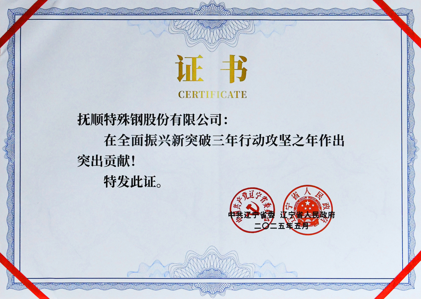 孫立國(guó)表示,撫順特鋼作為遼寧省實(shí)施全面振興新突破三年行動(dòng)首戰(zhàn)之年受到表?yè)P(yáng)的企業(yè),在攻堅(jiān)之年再次受到省委省政府的表?yè)P(yáng)倍感榮幸,也深知這份榮譽(yù)的背后是各級(jí)政府的關(guān)懷和扶持,上下游合作伙伴的信任和支持及全體員工共同努力的結(jié)果。此次獲得通報(bào)表?yè)P(yáng)是對(duì)撫順特鋼各項(xiàng)工作的充分肯定,將激勵(lì)撫順特鋼以更高的標(biāo)準(zhǔn)踐行“遼寧振興”的使命。2025年,撫順特鋼將力爭(zhēng)實(shí)現(xiàn)鋼、材、工業(yè)總產(chǎn)值同比增長(zhǎng),為遼寧省振興三年新突破決勝之年貢獻(xiàn)撫順特鋼的力量。